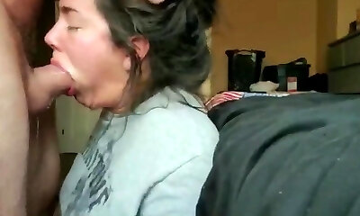 Cum-thirsty bitch throats strong shaft in hardcore facefuck tryout