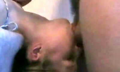 Face down amateur deepthroat and ball licking on the brim of a sofa