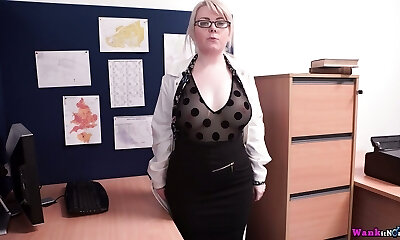Chubby brunette nerd pawed a dildo and wants more