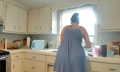 Preggie mature woman gave herself to her spouse right in the kitchen
