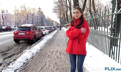Nerdy girl in glasses Selena loves casual anal sex with stranger stud