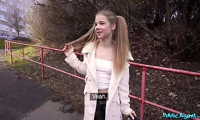 Dude picks up naughty pigtailed teen in short skirt Lucy Dame and porks her tight pussy