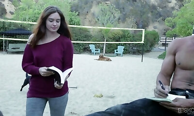 Not too bothered dark-haired Becky Bandini arches over letting man fuck her