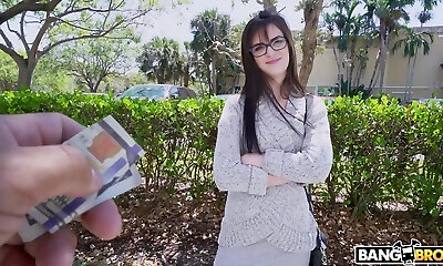 年轻的黑发Sofi瑞安展示口头快乐先生类和获取她vag撕裂了