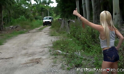 Puny灰-金发碧眼的十几岁的凶猛粉碎和facialized在一辆面包车