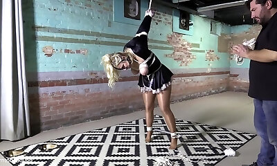 漂亮的玛丽得到她的猫拉伸在一个女仆制服-NuCosplay