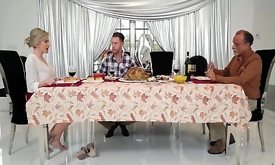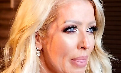 成熟的塑料金发丽贝卡更多得到一个粗略的粉碎在厨房里