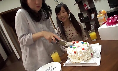 中国妈妈和继女共用沙发与Roomate和Boink他