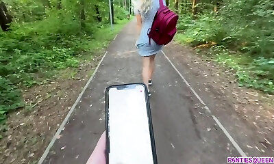 公众敢-继妹走来走去赤裸裸的户外在公园和玩遥控振动器在她的阴部