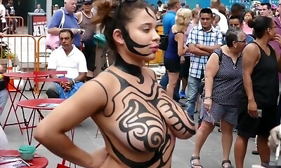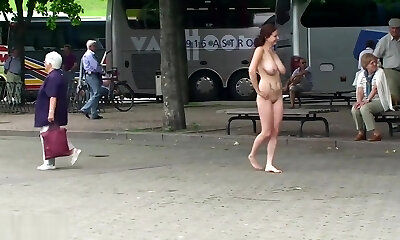 完全裸体的超级婊子莫娜威尔士漫步沿着城市之前被穿透硬