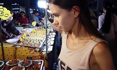 阿纳斯塔西娅海洋传播她的腿和戏弄与肉洞在公共