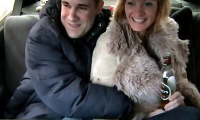 猥亵麦莉*科尔闪烁她的娘们在车上,然后titless女牛仔轨道凿