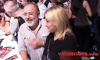 sale blonde labourée devant une foule
