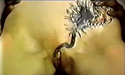 la méga-salope aux cheveux bruns a toutes ses crevasses remplies de longs objets rigides