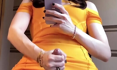 Chubby cheerleader in uniform wanks pussy and reaches orgasm