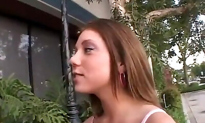 Redhead Deutsch milf works that big pipe with her culo and mouth in the park