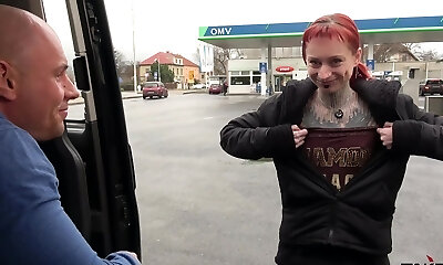 Totally Pierced and Tattooed Wierd Creature Rock the Man Meat in Driving Camper
