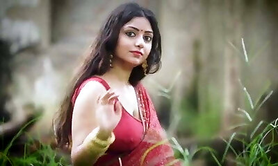Screwable Indian AUnty Rupashree In Red Sari outside